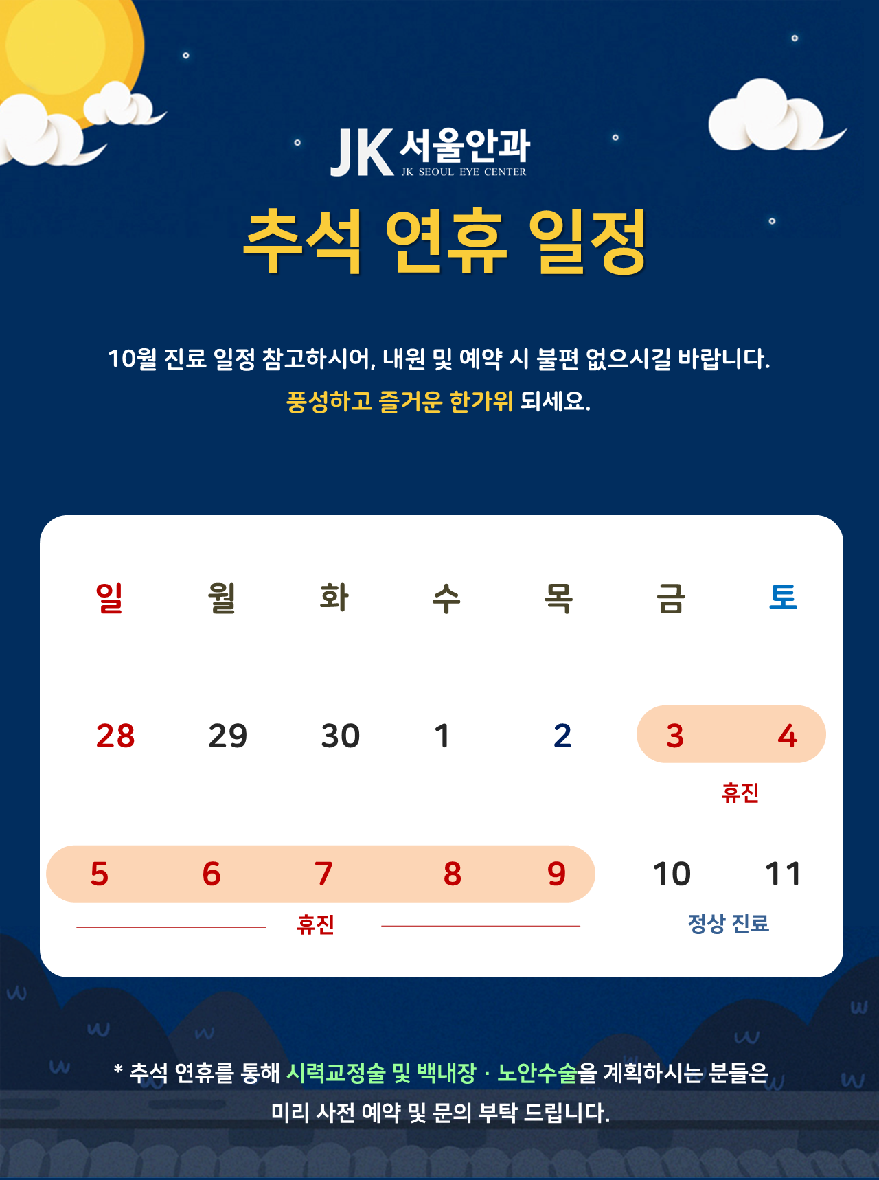 10월 추석 연휴 진료 일정을 다음과 같이 안내 드리오니