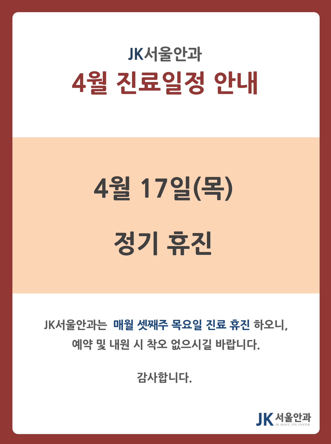 2025년 4월 진료 일정 안내